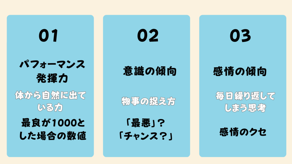 数値が高いほど、「自然に動ける・迷いが減る・疲れにくい」状態になり、低いほど「やる気はあるのに動けない・続かない・疲れやすい」状態が起こりやすくなります。